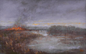 مناظر این مجموعه اما، در پی نمایش رازی پنهان یا شکوهی تکان دهنده نیستند، تلاشی بر تهییج مخاطب ندارند، هیچ تصویری به تمامی از طبیعت الگو برداری نشده، در تخریب و بازسازی مداوم فرم ها و با پالت رنگی محدود گاه جز خیالی شخصی و شبحی از طبیعت باقی نمی گذارند.